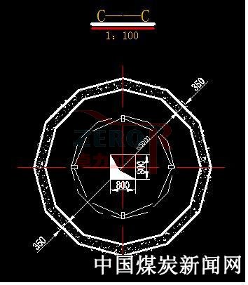 四川古敘煤田公司下屬川南煤業(yè)(集團)公司魯班山北礦三采區(qū)大型煤倉設計工程量為30米深,煤倉容量660m3,煤倉容煤量可達1000T(圖示)。魯班山北礦過去在煤倉施工中采用普通反井法施工工藝,勞動強度高、安全威協(xié)大,掘進速度慢、浪費坑木。通過調(diào)查研究,三采區(qū)煤倉利用反井鉆機鉆孔技術配套施工,先施工反井1.2m小直徑斷面掘進,待貫穿后自上而下擴刷至設計斷面,再對煤倉進行澆灌。實踐證明:這種方法具有機械化程度高、勞動強度低、確保安全生產(chǎn),在加快施工進度、提高單進水平和節(jié)約材料成本等方面取得了良好效果,其經(jīng)濟效益和安全效益顯著。